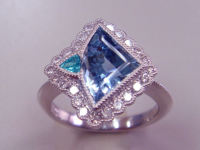 Pt アクアマリン トリマリン リング